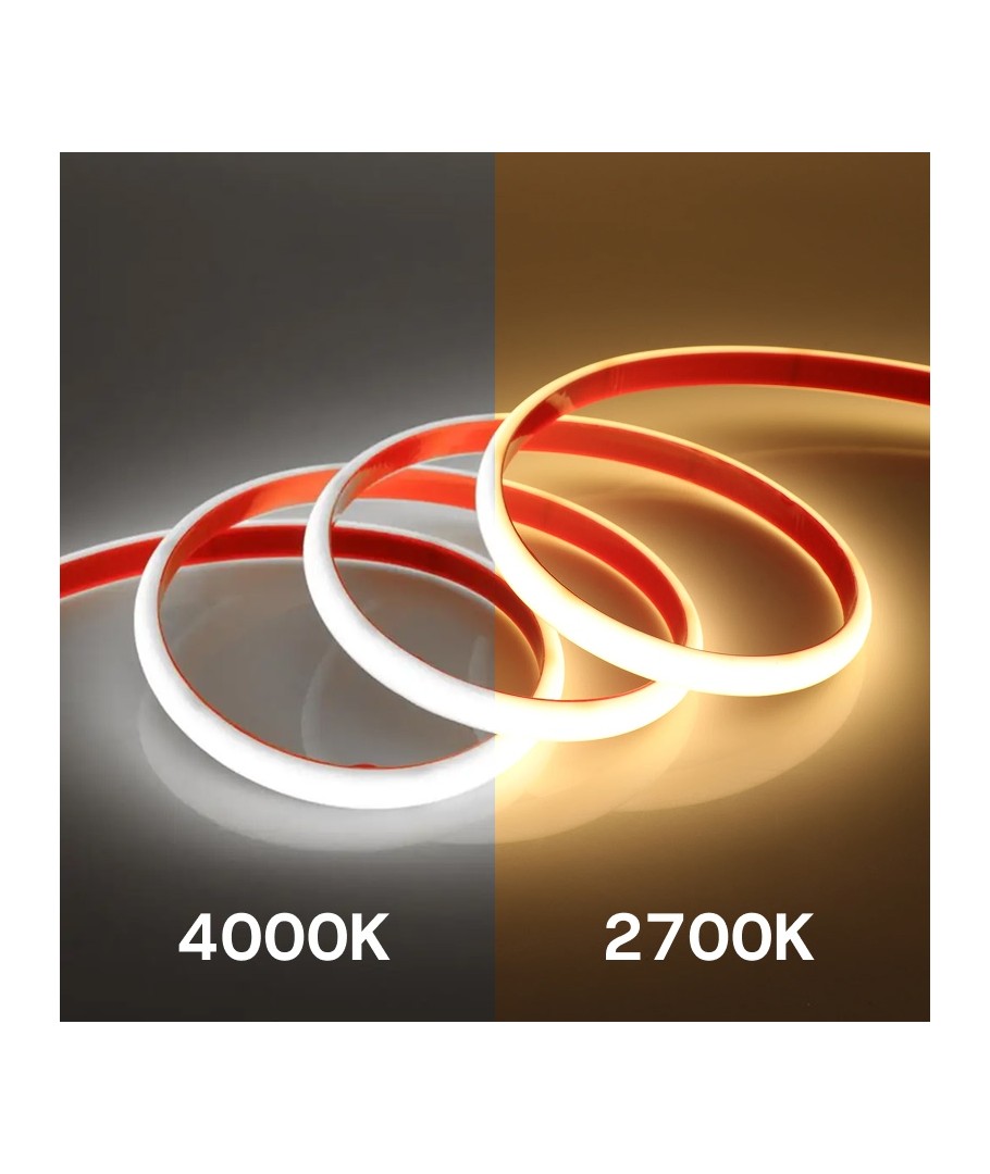 COB LED uden synlig afstand mellem LED dioderne. Dette får lyset til at fremstå som en uafbrudt streng.