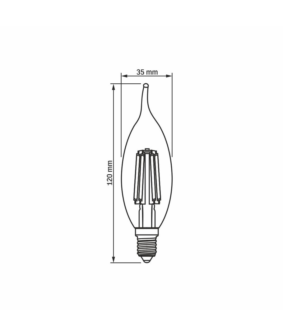 Med dimensionerne 35 x 120 x 35 mm, passer denne C35 pære diskret ind i dine armaturer. Den ravfarvede flammeform tilføjer en ekstra nostalgisk charme til dit hjems interiør.