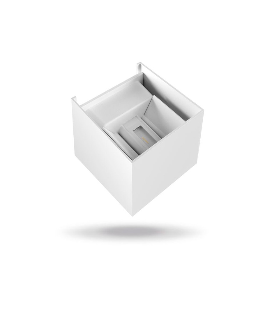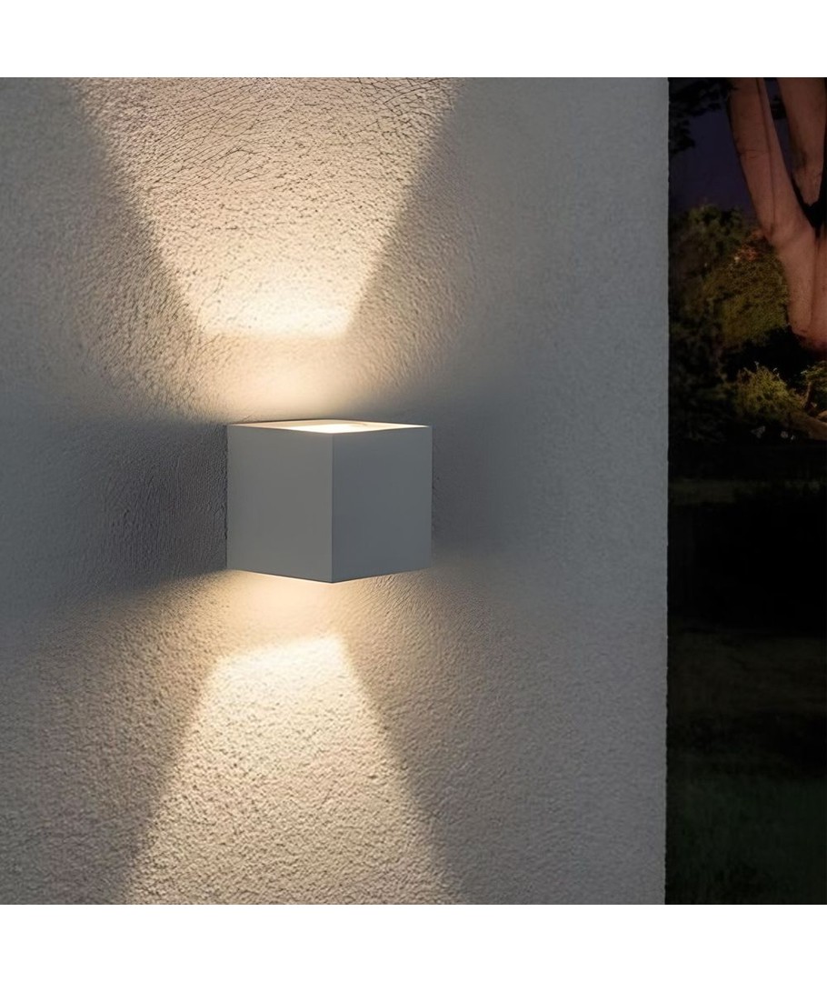 Med målene 100 x 105 x 100 mm passer lampen diskret ind i de fleste omgivelser. Desuden er den klassificeret med en IP54, hvilket betyder, at den tåler fugtig luft og vandstænk på fronten, hvilket gør den velegnet til både indendørs og udendørs brug.