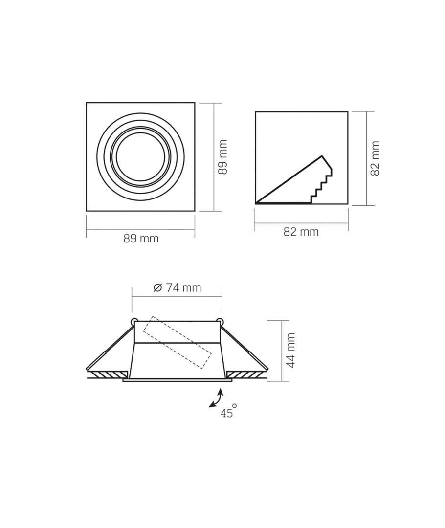 Den kompakte størrelse gør lampen ideel til brug i steder med begrænset plads, mens den samtidig leverer optimal lysfordeling. Med en hul størrelse på 77 mm, er installationen enkel og ukompliceret.