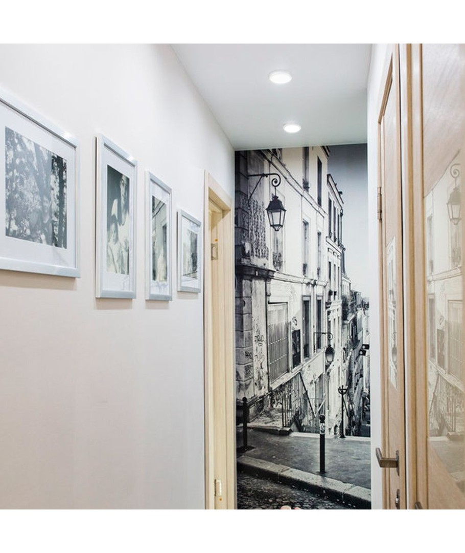 Dimensioner og anvendelse:Det elegante runde design og den kompakte størrelse gør lampen ideel til både kontor- og boligmiljøer, hvor den kan monteres i ethvert rum, der ikke udsættes for direkte vandkontakt.