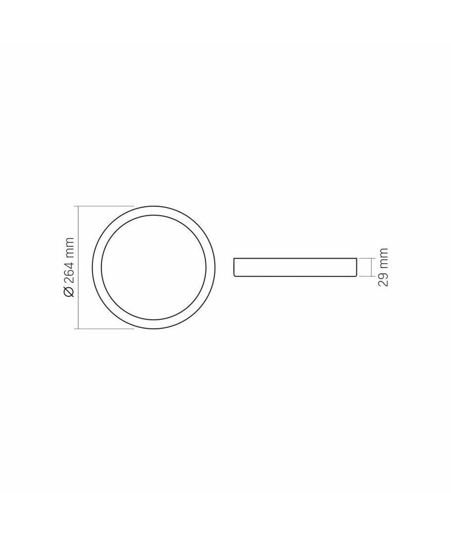 Med dimensioner på 264 x 264 x 29 mm passer loftlampen diskret ind i rummet uden at optage unødig plads. Selvom den har en IP20 beskyttelse, hvilket betyder, at den ikke er modstandsdygtig over for vand, egner den sig fremragende til indendørs brug uden høj luftfugtighed.