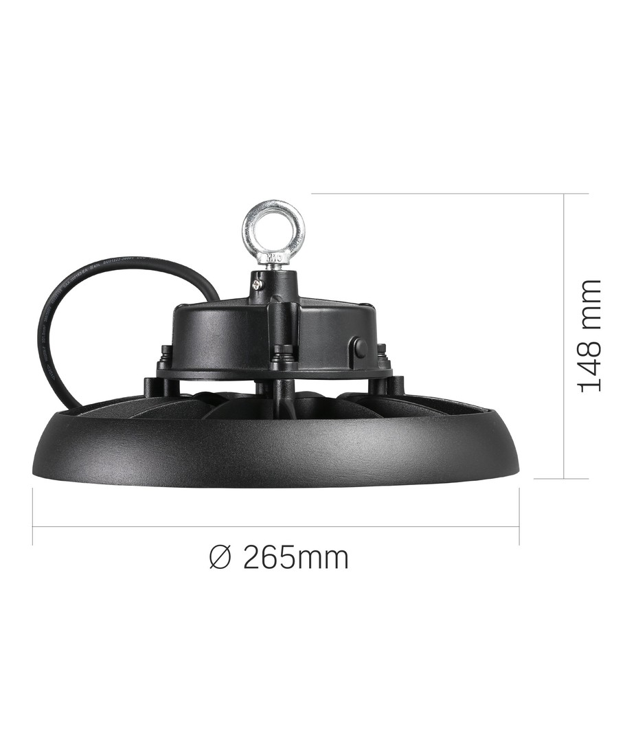 Med en solid konstruktion, der holder lampen sikker og funktionel i både indendørs og udendørs omgivelser, er HB01 high bay designet med en IP65-klassifikation. Dette betyder, at den kan tåle vandstænk og regn, hvilket gør den ideel til krævende miljøer.