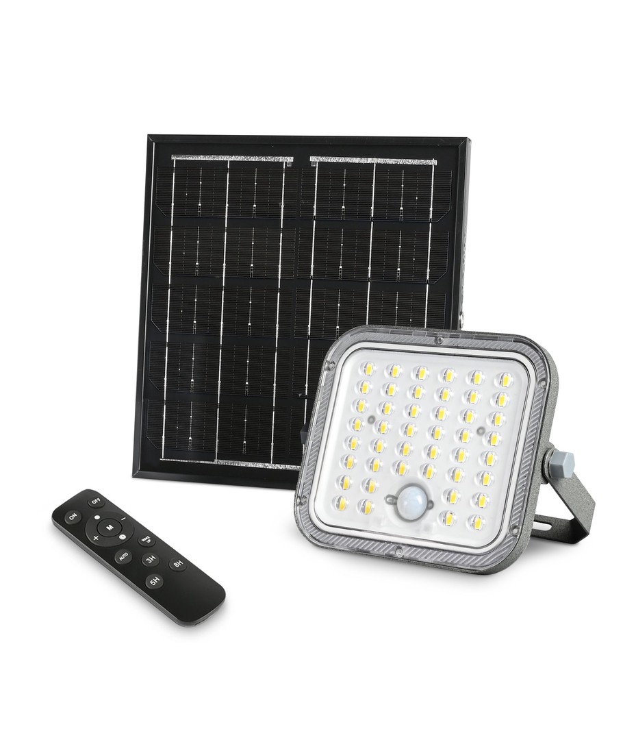 Oplev en LED solcelleprojektør, der kombinerer høj ydeevne med miljøvenlig teknologi. Denne projektør er udstyret med en bevægelsessensor, hvilket gør den ideel til belysning af udendørsarealer ved automatisk at tænde, når der registreres bevægelse.
