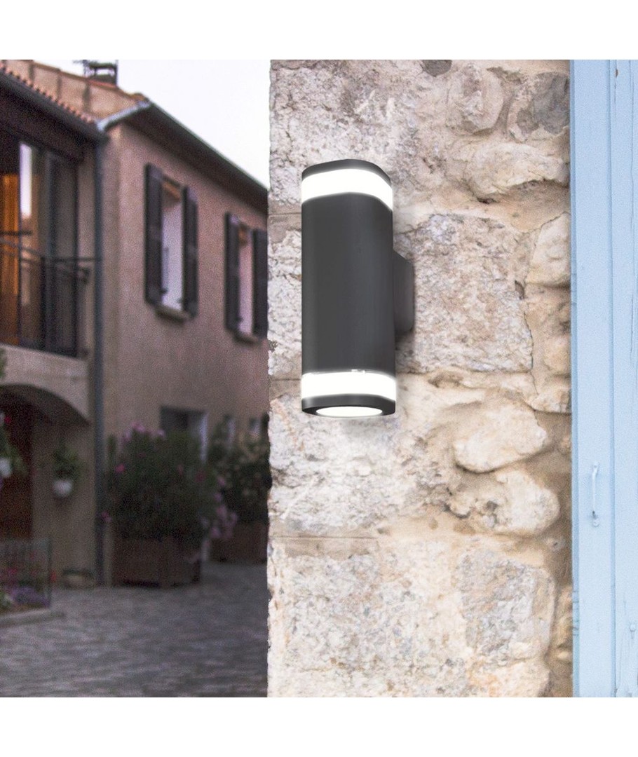 Tilføj et moderne touch til dit udendørsområde med dette dobbeltrettede facade-armatur i en stilfuld bruno grå finish. Det er designet til at skabe en behagelig og effektfuld belysning både opad og nedad, hvilket gør det ideelt til både dekorativ og praktisk brug.