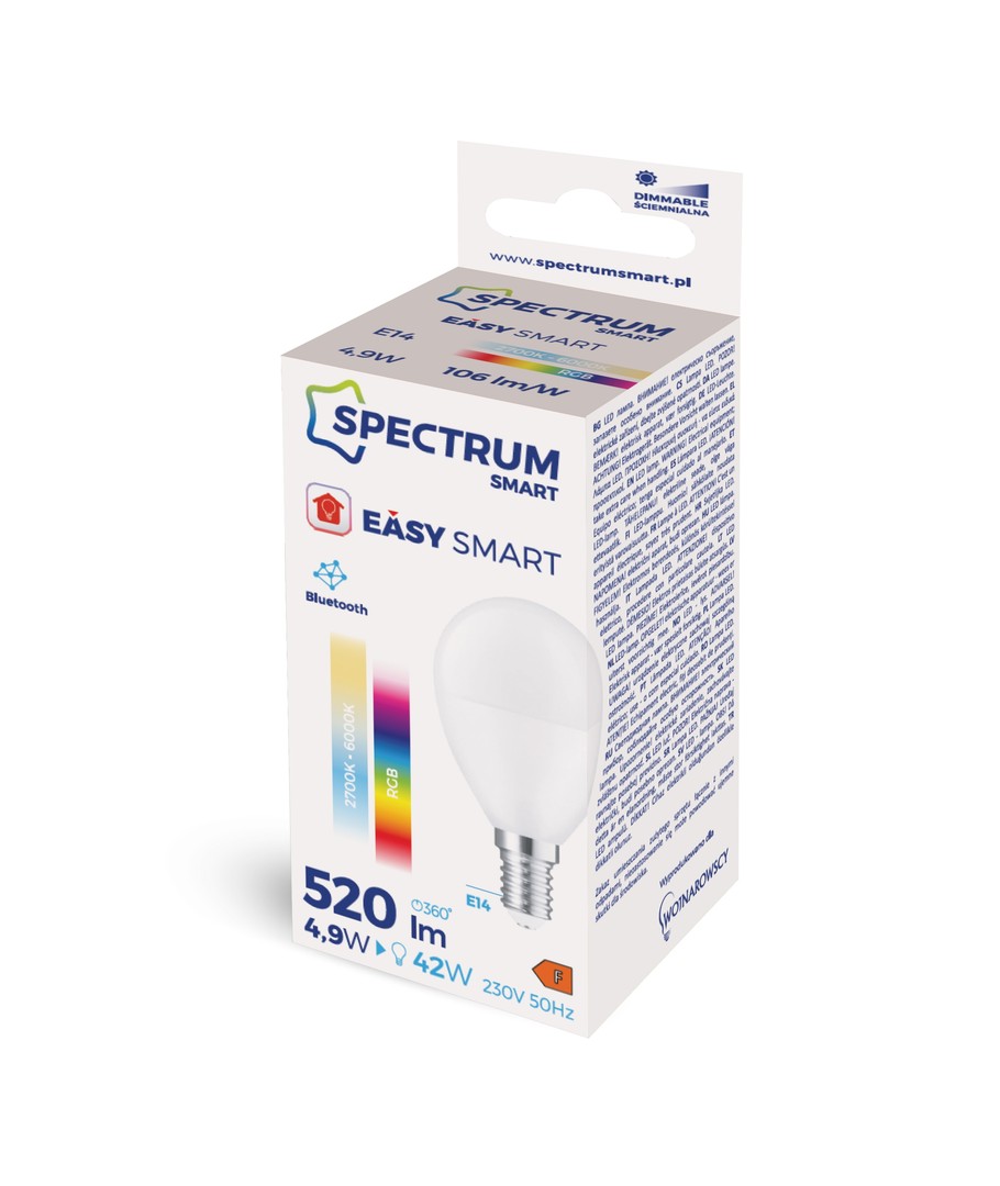 Oplev en smartere belysning derhjemme med E14 4,9W Smart Home kronepære - P45, RGBW+CCT, der kombinerer moderne teknologi med energieffektivitet for at skabe den perfekte atmosfære i dit hjem.